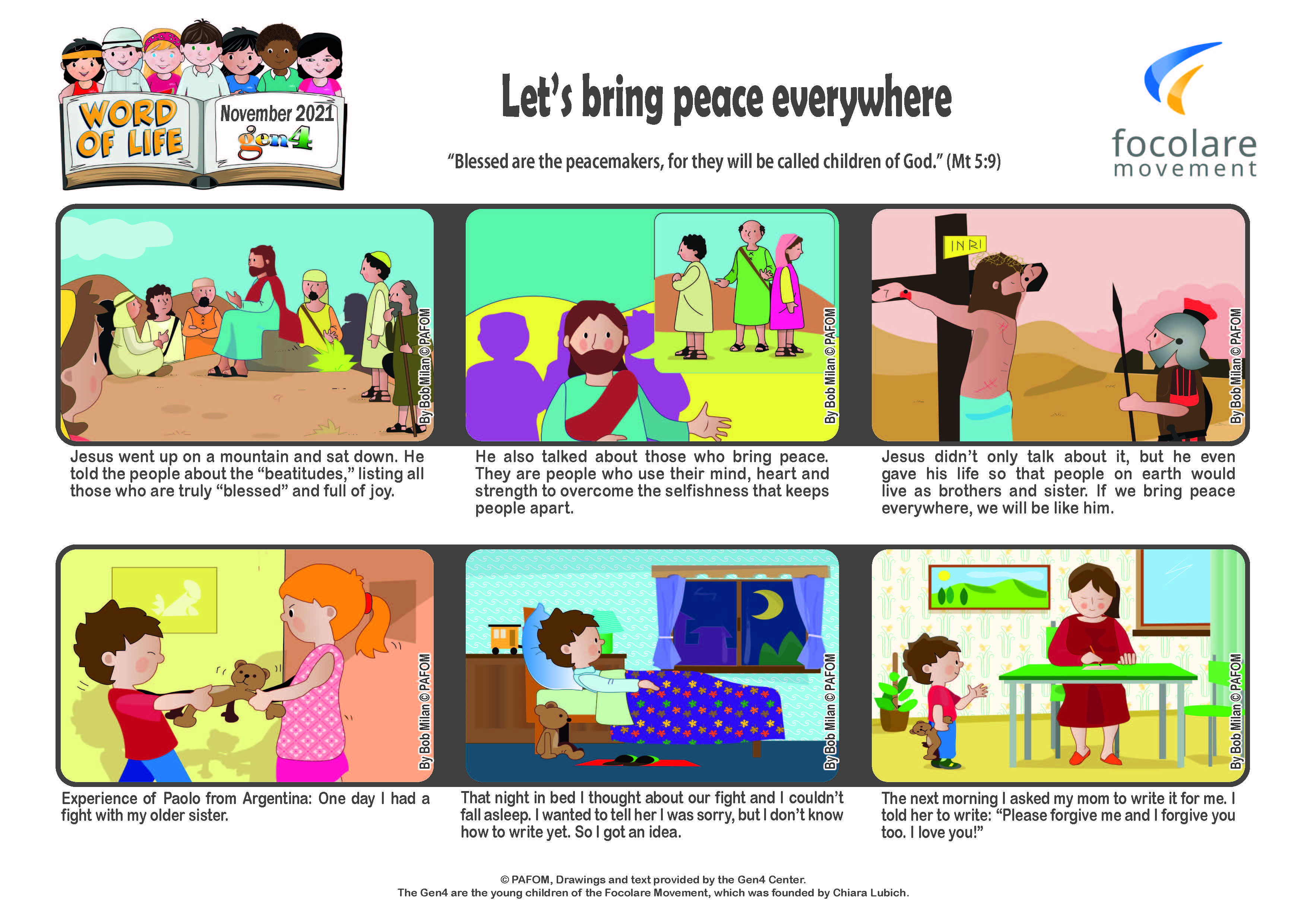 “Blessed are the peacemakers, for they will be called children of God.” (Mt 5:9)