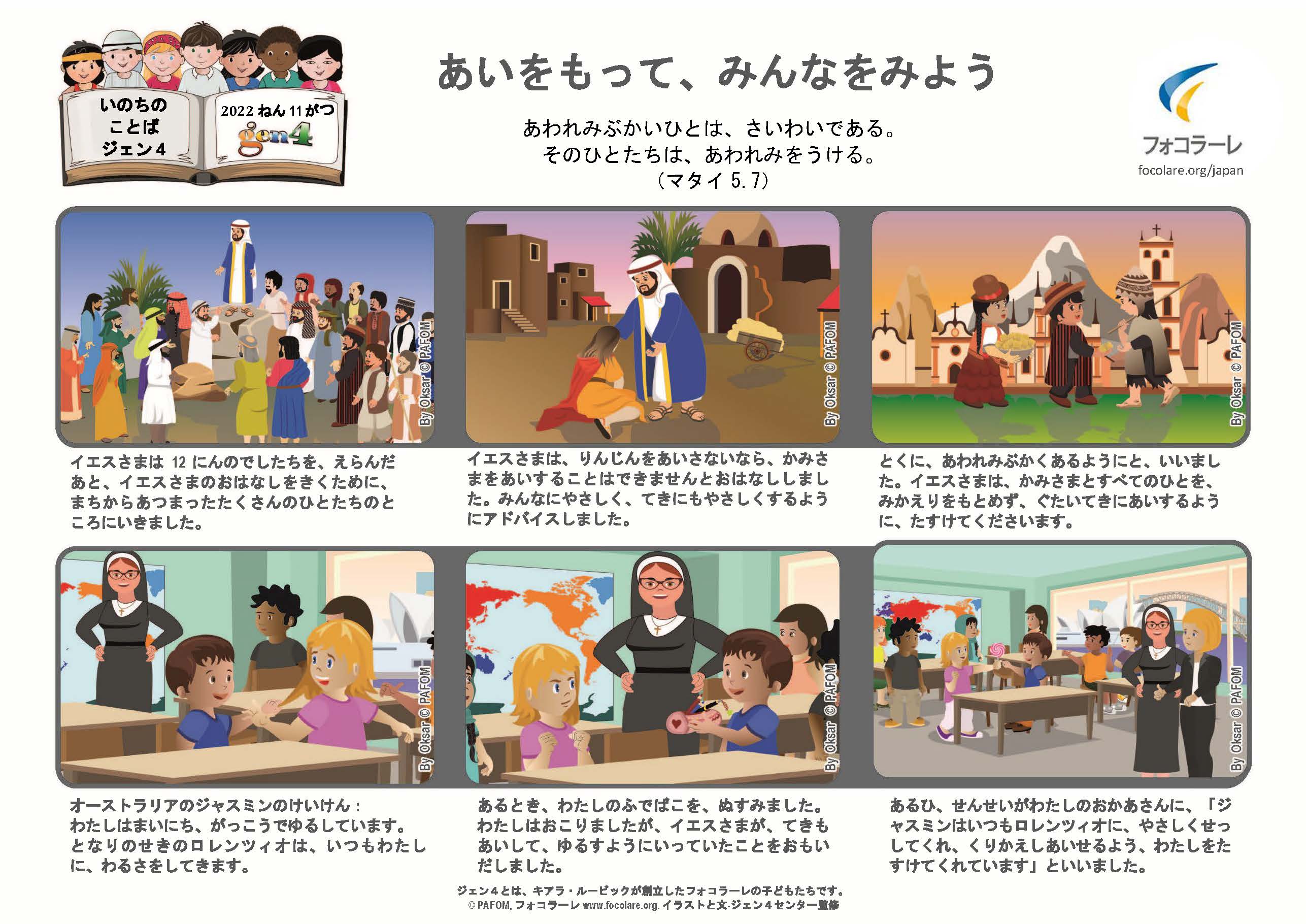 あわれみぶかいひとは、さいわいである。そのひとたちは、あわれみをうける。(マタイ5.7)